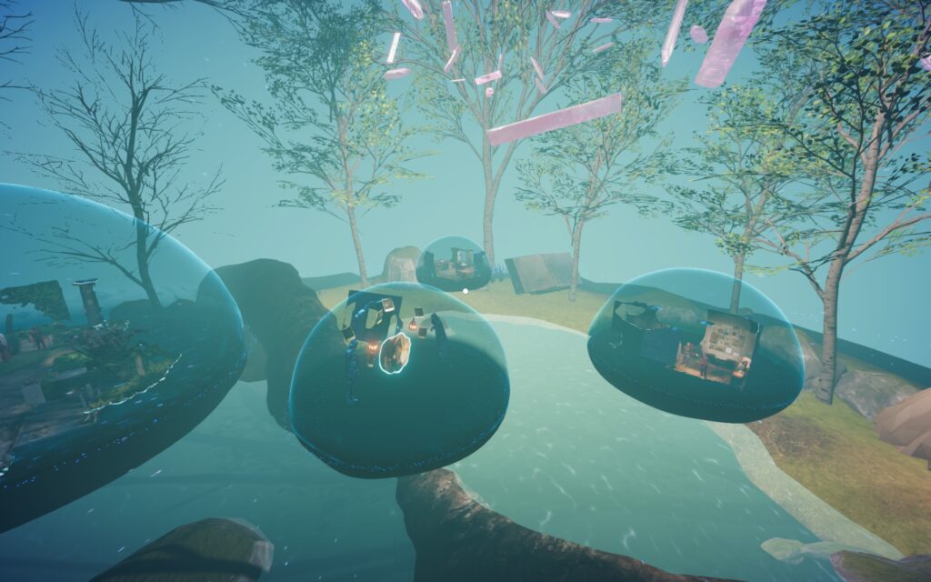 Selvom man altså “tvinges” til at engagere sig, så er udforskningen primært lystdrevet. Historien og spilverdenen er nemlig det, der har udviklet sig mest siden det oprindelige studenterprojekt. Uden at afsløre for meget, viser det sig, at Sebastian, efter en personlig tragedie, har fået kontakt til en slags New Age-gruppe. Gruppen har også adgang til Mind Diver-teknologi, men de bruger det på anden vis end spilleren – ikke til at genskabe minder, men til at genopleve den.