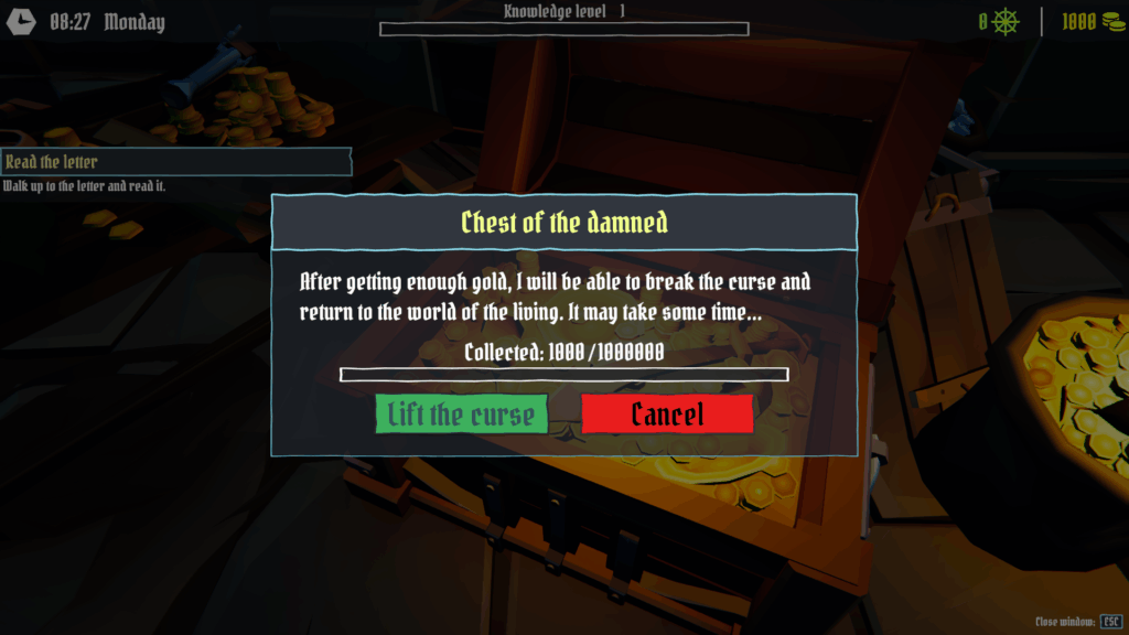For du er død. Og den eneste vej tilbage til de levendes verden går gennem profit. Du skal skrabe én million guldstykker, ved at drive en butik, der handler med alt fra rom, rustne sabler til eksotiske piratsouvenirs. Heldigvis fejler pirattemaet sjældent, og her hjælper det også, at spillets hovedmenu møder dig med den ikoniske sømandssang “What shall we do with a drunken sailor?”, hvilket straks sætter tonen for det der venter: en blanding af klassisk management og skæv humor.
