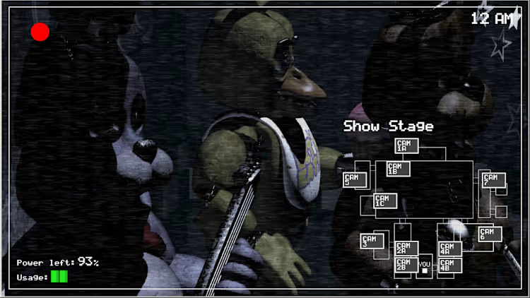 Five Nights at Freddy’s, der som spilserie voksede markant indenfor blot ét enkelt år, med intet mindre end fire spil under sit navn mellem august 2014 og juli 2015, hvilket i sig selv gik hen og blev lidt af en intern joke, handler i grove træk om at du som spiller har fået nyt job som nattevagt hos den titulære koncern, og fem nætter i træk – ofte med en sjette bonus nat – fra klokken 12 til 6 skal overleve en serie af løbske dyrerobotter der alle forsøger at komme dig til livs. Dette mens du kun sidder på dit kontor og bruger overvågningskameraer til at holde øje med dem, og med diverse hjælpemidler forsøge at hindre deres fremskridt.